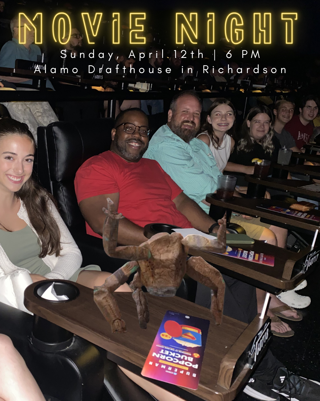Youth Movie Night Thursday, April 9, 2026 3:00 PM 4:00 PM 15:00 16:00 Google Calendar ICS Youth - Join us Sunday, April 12th at 6pm at Alamo Drafthouse in Richardson. We will be seeing Project Hail Mary.